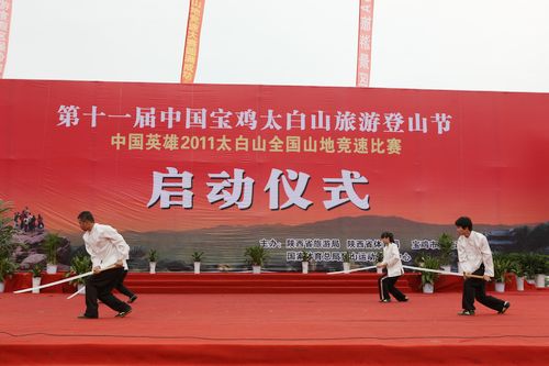 5月10日,由国家体育总局登山运动管理中心、陕西省旅游局、陕西省体育局和宝鸡市人民政府共同主办的第十一届中国宝鸡太白山旅游登山节暨2011太白争锋—中国英雄全国登山大赛启动仪式在太白山脚下隆重举行。久久不卡区《古典武艺》、《力与美的旋律》两个节目参加开幕式文艺演出,获得圆满成功,充分展示了陕西省优秀体育文化成果。