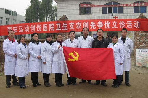 2010年10月31日,我院教学实验医院内、外、五官、预防保健、医院感染、医技、护理等科室10余名党员及积极分子组成支农义诊服务队,在刘勇院长带领下赴周至楼观镇开展义诊活动,为百余名群众进行了健康咨询、免费健康查体及诊疗活动。