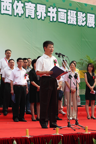 日前,为配合陕西省第14届运动会,弘扬体育文化精神,省体育总会在全省体育系统征集体育书画、摄影作品,在省体育场国际展览中心举办了“陕西体育界书画摄影展览”。陕西省副省长郑小明、省体育局局长王建军等出席开幕仪式。