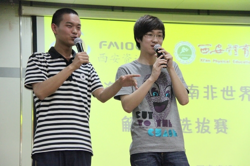 经过层层选拔,来自09级播音1班的杨泽生、08级播音4班的肖山和杜明楠三位同学分获前三名,进入西安资讯广播南非世界杯嘉宾解说阵容。由于表现出色,播音与主持艺术专业(体育节目主播方向)07级王番和09级王逸格也作为储备人才一起参与西安资讯广播南非世界杯转播解说工作。