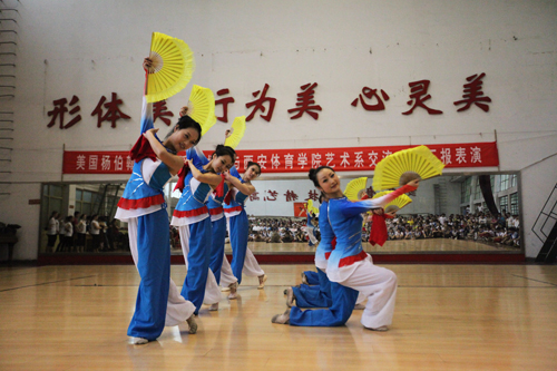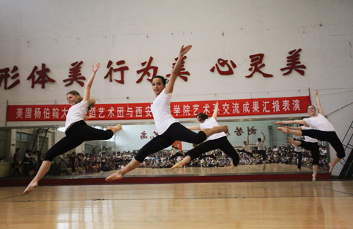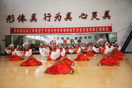 2010年5月7日下午,在我院体操馆举行的美国杨伯翰大学舞蹈艺术团与我院艺术系交流成果汇报表演取得圆满成功。出席此次汇报表演的有我院院长苏明理,院党委副书记朱元利,院党委副书记、纪委书记苏义民,陕西师范大学音乐学院副院长程鹏民,陕西省舞蹈家协会副主席武世民,陕西省舞蹈家协会秘书长程琳,美国杨伯翰大学卡洛琳教授、黄嘉敏教授,陕西省教育厅体卫处有关同志等,我院师生及来自兄弟院校的嘉宾一同观看了演出。