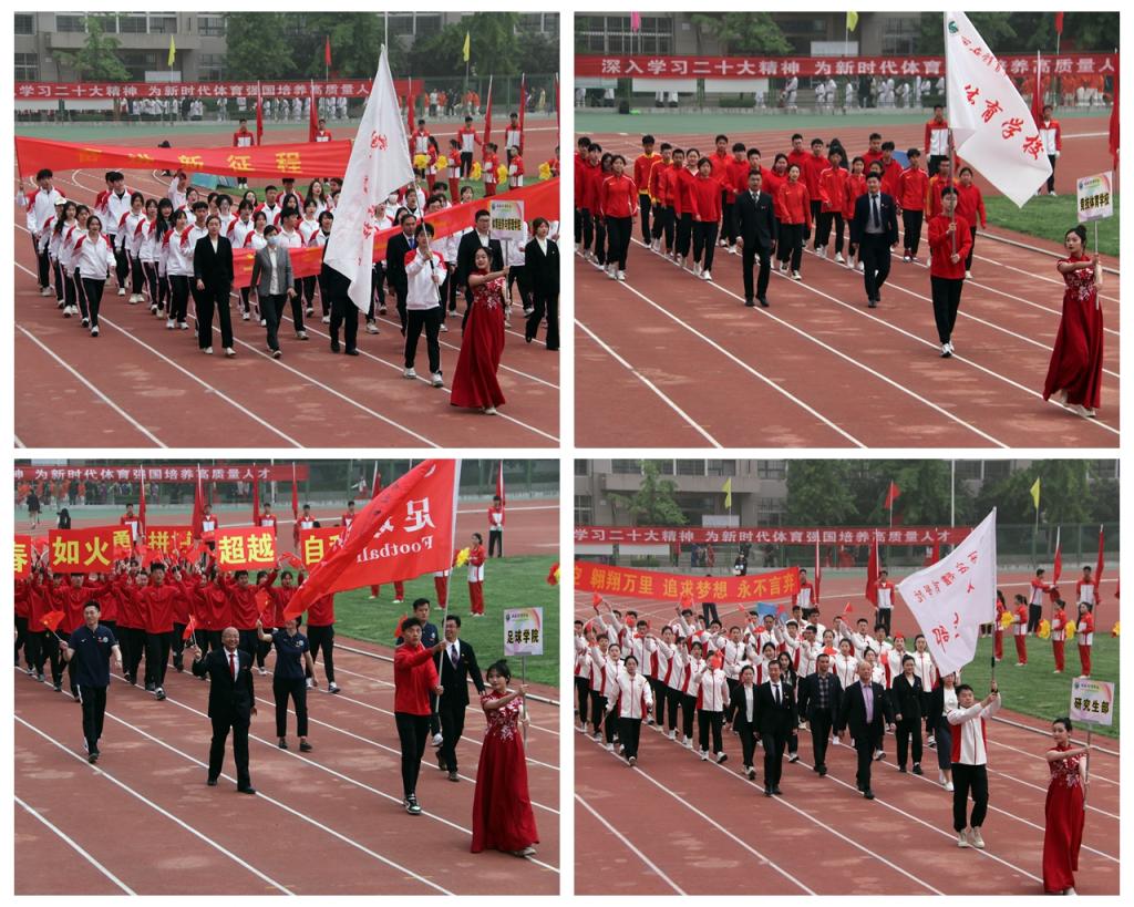 旌旗飘扬,乐声铿锵。国旗护卫队以挺拔的身姿护送着国旗与校旗,整齐划一、昂首阔步地通过主席台。伴随着振奋人心的《运动员进行曲》,红旗方阵、裁判员方阵及各二级学院运动员方阵紧随其后,他们步伐整齐、口号嘹亮、目光坚定地走过主席台,以积极饱满的精神状态接受领导检阅。各方阵独具一格的队形变换为师生带来了一场精彩纷呈的视觉盛宴。