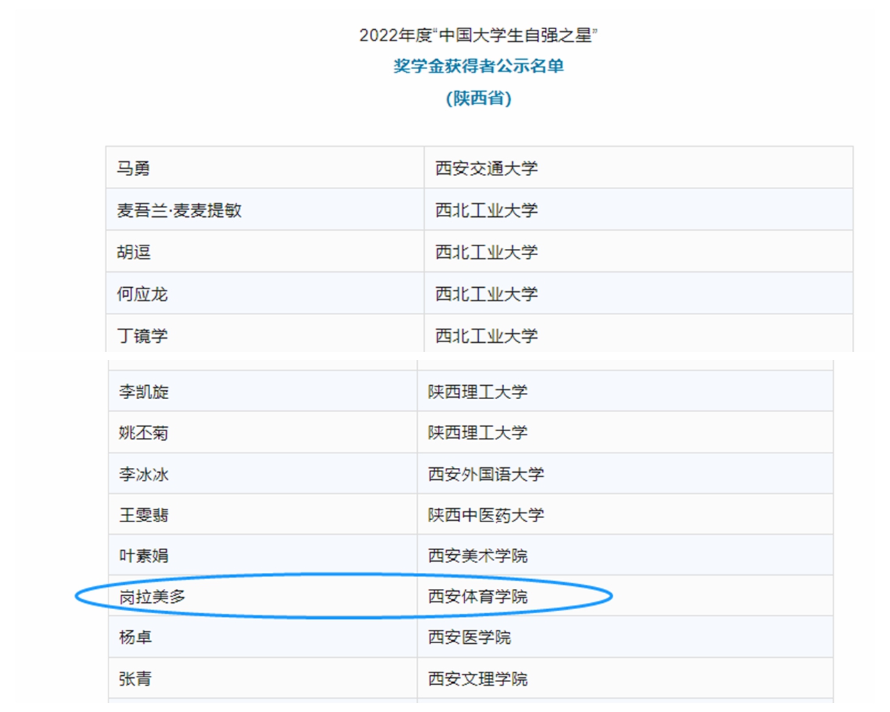 我校运动训练学院2022级学生、竞走国家健将岗拉美多荣获2022年度“中国大学生自强之星”奖学金。岗拉美多是一名来自青海的藏族学生,2017年入选久久不卡区竞走队,曾多次代表国家、陕西省参加5公里和10公里竞走比赛,在全国女子竞走总排名第二。2021年在黄山全国竞走锦标赛上取得10km冠军,刷新个人最好成绩并达到10公里健将,同时入选2021年9月20日第十四届全国运动会,代表陕西取得了女子团体20公里冠军。2021年12月入选国家队集训备战2022年阿曼世界杯竞走比赛,2022年3月代表国家出战阿曼马斯喀特比赛,获得女子10公里团体世界冠军。