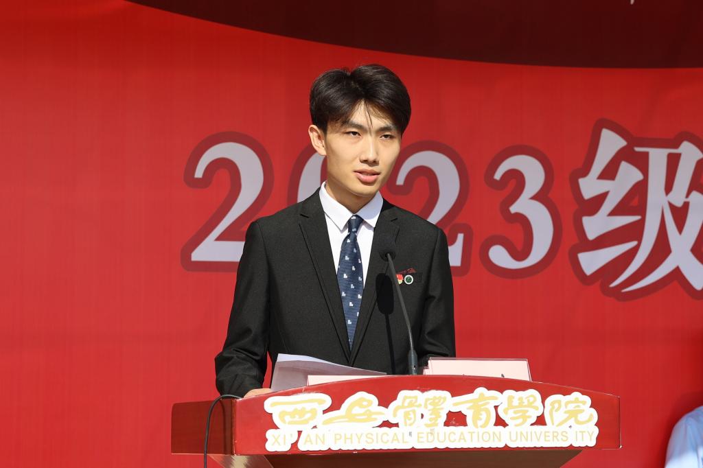 2023级新生代表杜柯瑶、黄安齐在发言中表示,全体新生要勇敢肩负起时代赋予的责任,传承“严谨创新,团结拼搏”的西体校训,胸怀理想,志存高远,珍惜韶华,勇毅创新,在奋斗中释放青春激情、追逐青春理想,以时间和行动,逐步接近理想和目标。