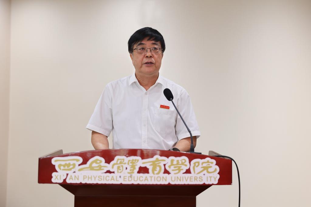 党委副书记高玉峰分别给荣获2022年体育运动一级奖章教练员蒋秋艳;荣获2022年全国田径投掷项群赛男子铅球冠军陈剑荣获2023陕西大学生足球联赛一级联赛(超级组)优秀教练员张雁飞;荣获2023年杭州亚运会撑竿跳高项目参赛资格牛春格;荣获陕西省第八届少数民族传统体育运动会优秀组织奖朱海楠颁奖。