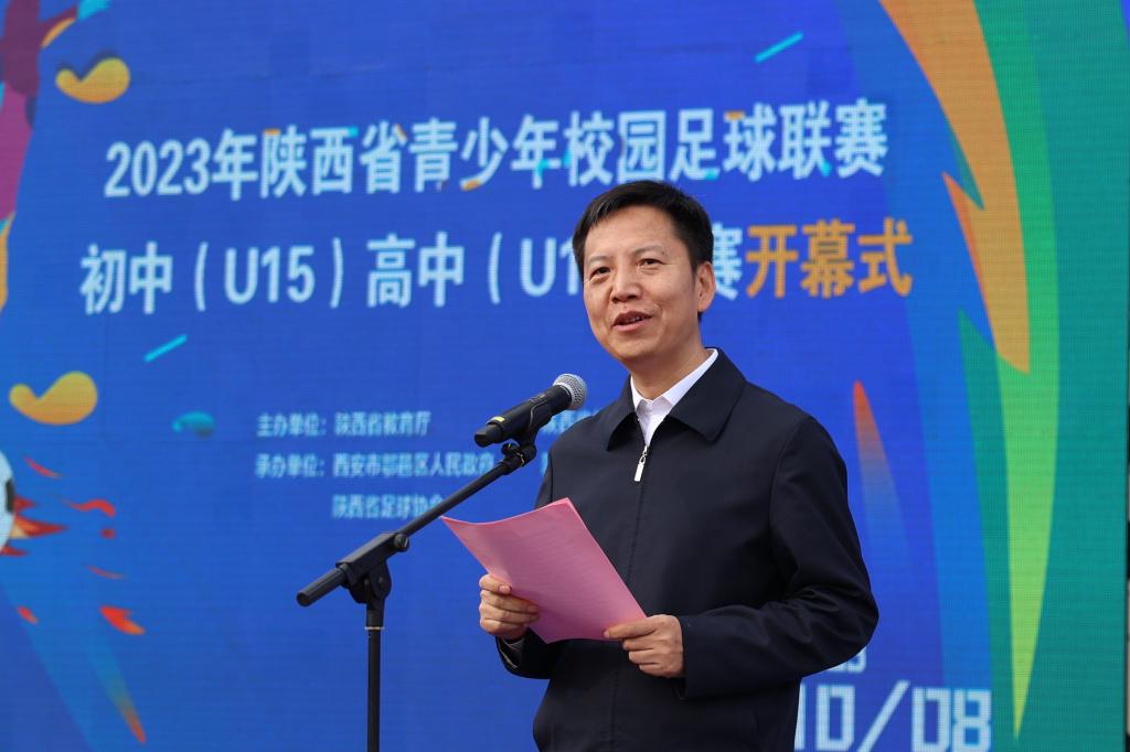 本网讯        10月8日,由陕西省教育厅、陕西省体育局主办,我校和鄠邑区政府承办的2023年陕西省青少年校园足球初中(U15)高中(U18)联赛开幕式在鄠邑区举行。陕西省委教育工委委员、省教育厅副厅长申雪峰出席讲话并宣布开幕,西安市鄠邑区委副书记任涛致欢迎辞,省体育局二级巡视员郭文、我校副校长张卫国等领导嘉宾出席开幕式。省学生体育协会主席刘宝平主持开幕式。