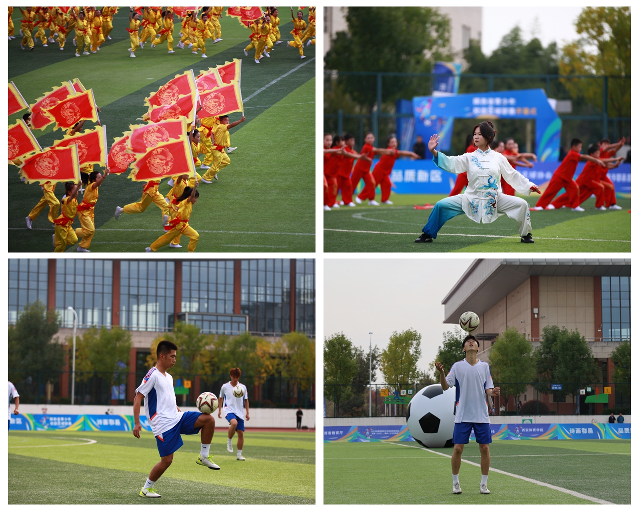 开幕式上,来自鄠邑区兆丰桥小学、西安滨河荣华实验小学、西安惠安中学的小演员们和我校武术学院25名学生同台展演,通过花式足球表演、旗舞、武术操、歌伴舞等独具特色的艺体节目,展现了青少年的昂扬向上的精神面貌,将现场氛围推上了高潮。紧接着,联赛揭幕战上,宝鸡高新一中和志丹县保安中学两支球队展开了激烈的角逐,足球小将们在赛场上挥洒汗水,尽展青春风采。