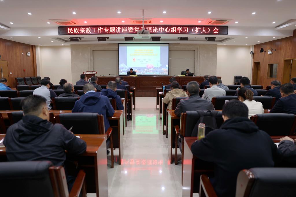 本网讯 为深入学习贯彻习近平总书记关于加强和改进民族宗教工作的重要思想、重要论述、重要精神,10月18日下午,我校召开党委中心组专题理论学习扩大会,邀请陕西省民族宗教事务委员会党组成员、副主任王晓斐同志作题为《完整准确全面贯彻党的民族宗教理论政策法规 扎实做好新时代党的民族宗教工作》的专题讲座。在家校领导、党委委员、党委统一战线领导小组成员、副处级以上干部、各党支部书记、各民主党派主委等参加本次讲座。本次讲座由校党委副书记、纪委书记、监察专员杨芳乾主持。