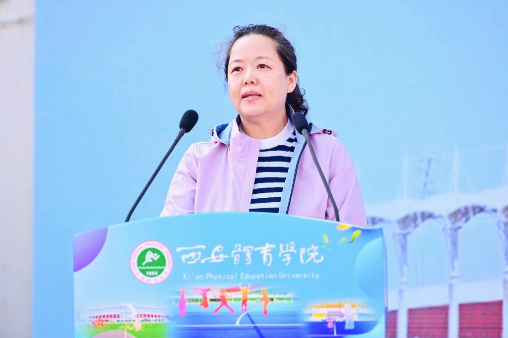谢英代表学校党政对运动会致开幕辞。她指出,近年来,广大教职工在校党委的坚强领导下,活跃在教学、科研、训练第一线,用行动彰显责任、用担当诠释忠诚,为我校高质量发展做出了重要贡献。当前,学校正处在爬坡过坎的关键时期,以此次运动会为契机,充分发挥体育正能量,把百舸争流、勇攀高峰的体育精神,转化为奋楫者先、勇立潮头的工作动力;把团结协作、科学求实的体育精神,转化为合作共赢、求真务实的工作态度,营造学校发展的良好氛围。