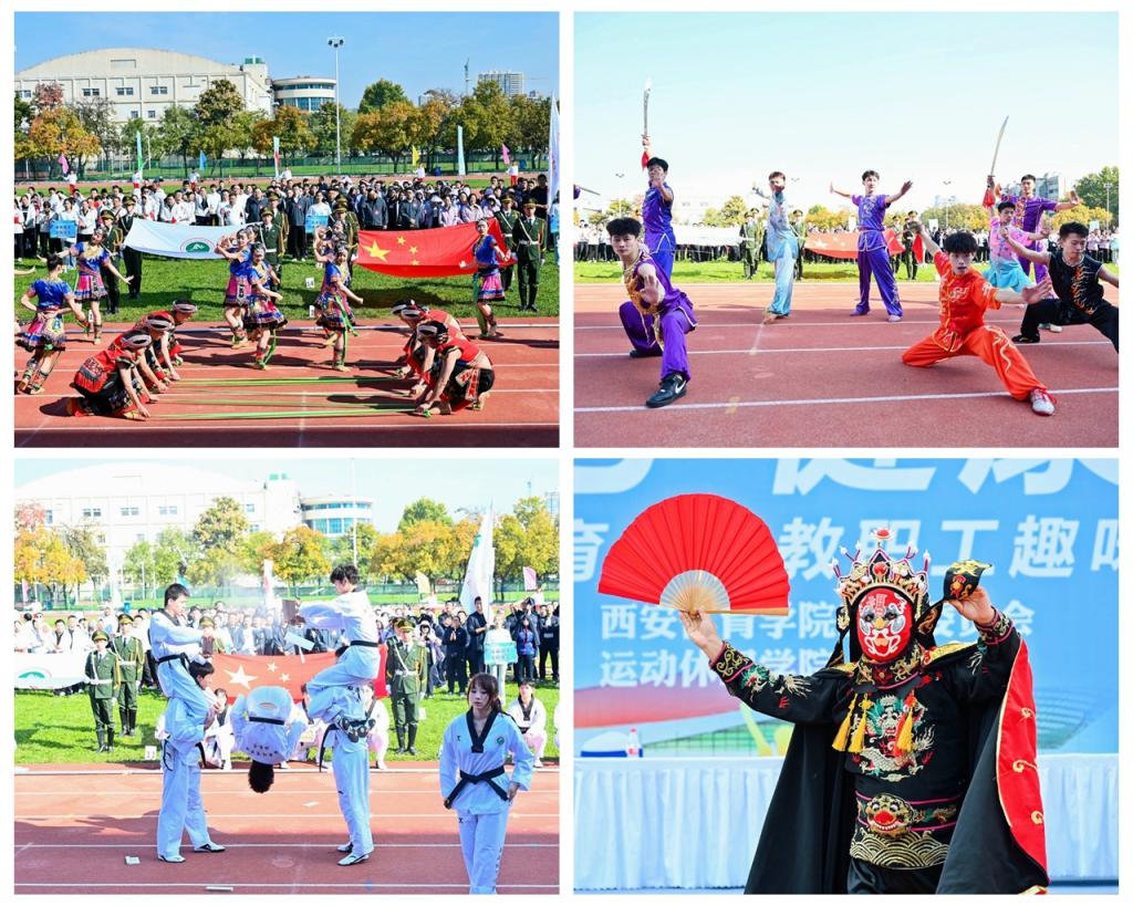 随后学生们轮流登场,为开幕式献上精彩表演。有优雅从容、轻盈婀娜的体育舞蹈,精神抖擞、气势磅礴的武术表演,以及行云流水、一鼓作气的跆拳道,展现了学校各专业特色,彰显了西体人活力四射、朝气蓬勃的精神面貌。特邀出演的川剧变脸表演更是赢得现场师生的惊呼和赞叹。