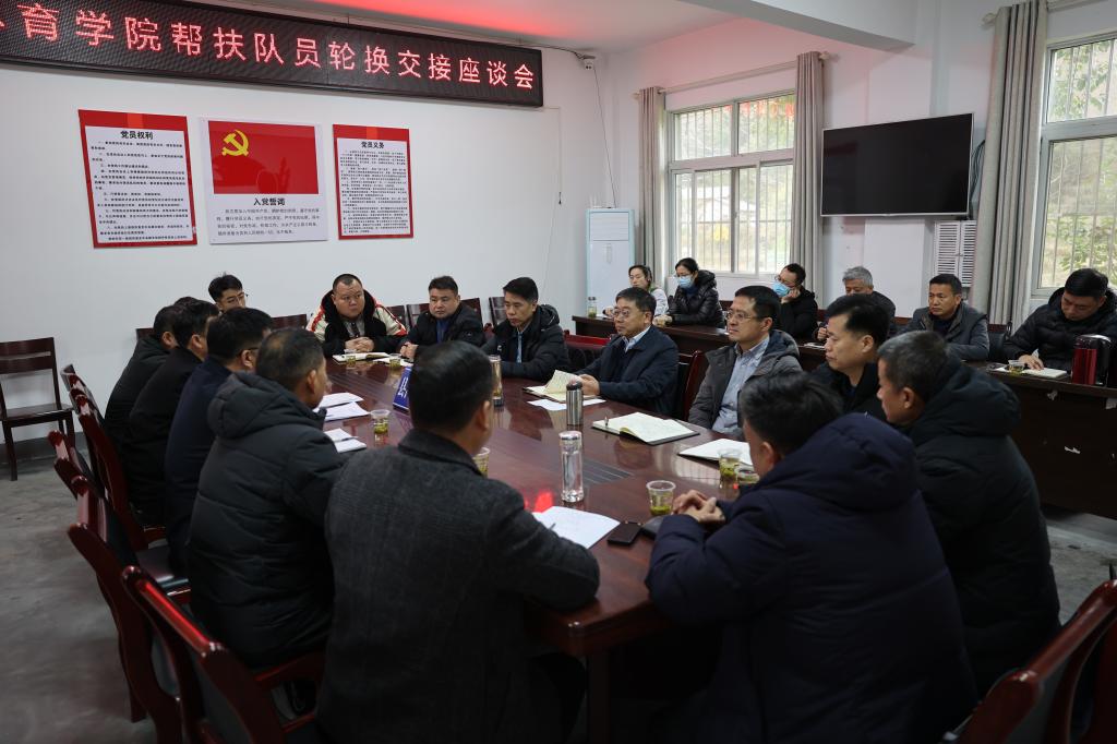 本网讯 按照省乡村振兴局“驻村工作队两年一轮,队长和队员压茬轮换”的要求,我校2021年派驻安康市汉滨区县河镇谢坝村的三名工作队员任期已满两年。经校党委研究同意,对第一书记和两名驻村队员进行调整轮换。12月15日,校党委书记刘子实带队,副校长张卫国同行,带领新选派的驻村第一书记刘强和驻村队员刘转、马德康赴谢坝村开展驻村轮换交接工作。