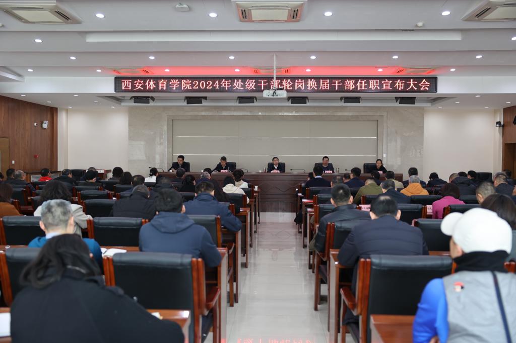 本网讯 为进一步优化干部队伍建设,激发办学活力,加快实现学校高质量发展,2月底,我校启动了2024年处科级干部轮岗换届工作。经宣传动员、个人自荐报岗、分析研判动议、党委会研究决定,处级岗位干部平级交流及平级任职工作已经完成。3月8日上午,我校召开2024年处级干部轮岗换届任职宣布大会。全体校领导出席,副处级以上干部及二级学院教师代表参加了此次会议,校长李富生主持会议。