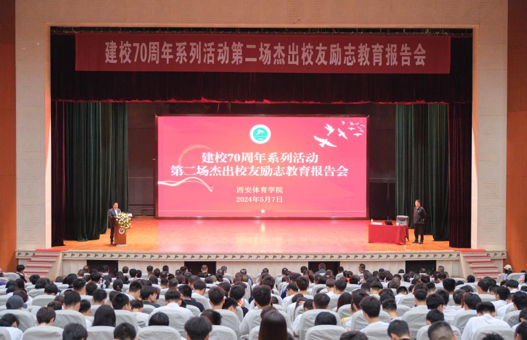 本网讯 5月7日晚,我校82届毕业校友、中学正高级教师、特级教师、国家级骨干教师、教育部跨世纪学科带头人、全国百名优秀体育教师、西北工业大学附属中学体音美教研组组长屈中乾回到母校,为师生作《奔赴热爱 育体育人》的精彩报告,这是我校建校70周年系列活动第二场杰出校友励志教育报告会。校长李富生主持报告会,党委副书记、纪委书记、监察专员杨芳乾,副校长张卫国出席,师生代表、处科级干部1400余人参加报告会。