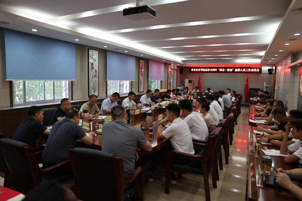 李富生在讲话中指出,举办“两会一活动”,是今年的一件大事、喜事,是实现西体高质量发展、崛起辉煌的新起点,应对标全运会标准办好“两会一活动”。一是提高站位,把准定位,落实到位,争先进位。要进一步认识“两会一活动”的重要意义以及办会目标、办会内涵,充分展现学校近年来的办学成绩和崭新风貌,把各项筹备工作落实落细,以高质量筹备展示高质量服务保障水平。二是紧扣重点,把握节点,突出重点,攻克难点。要抓住举办大型活动的关键要素,倒排工期,挂图作战,发挥牵头部门和协同部门的工作合力,留足提前量,凸显亮点和特色。三是鼓足干劲,铆足拼劲,增强闯劲,砥砺韧劲。要爱校荣校,践行“五种精神”,学习鄠建作风,逢山开道,遇水搭桥,以实干实绩为新中国成立75周年、建校70周年献礼。