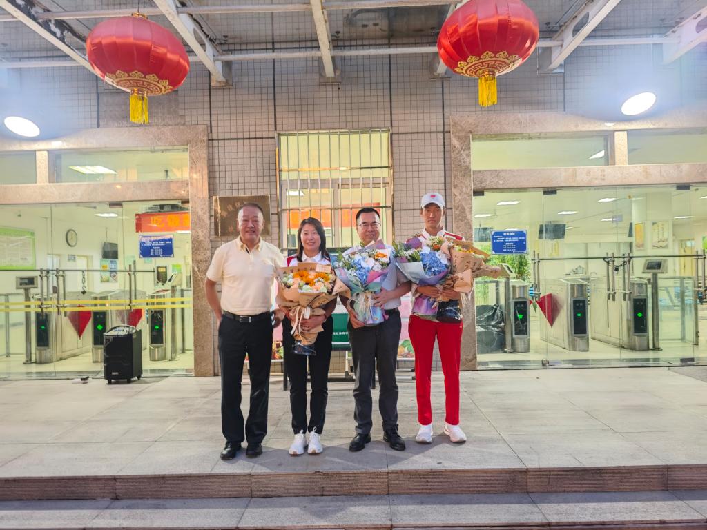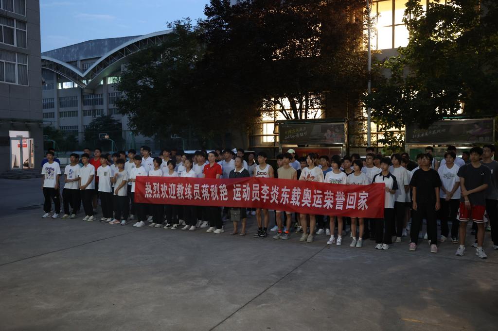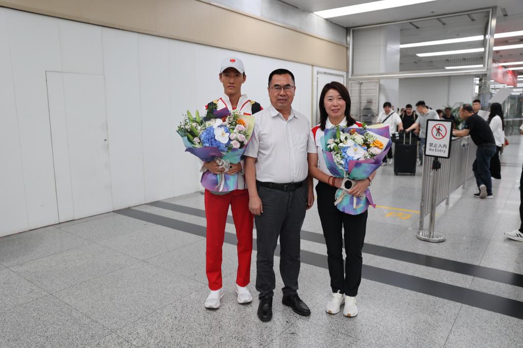 李富生赴机场迎接我校出征巴黎奥运会运动员李炎东及教练员蒋秋艳荣誉返校