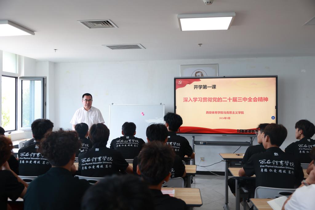 党委书记刘子实为体育新闻与传媒学院学生讲授了深入学习贯彻党的二十届三中全会精神的思政课,从党的二十届三中全会的重大意义、精神实质、核心要义和实践要求,对党的二十届三中全会精神进行了系统阐释,并结合国内国际鲜活事例和学校发展实际讲授了如何贯彻党的二十届三中全会精神,推进教育科技人才体制机制一体改革,提升办学质量,同时教育引导学生坚定理想信念、锐意进取、开拓创新,为中国式现代化建设贡献青春力量。