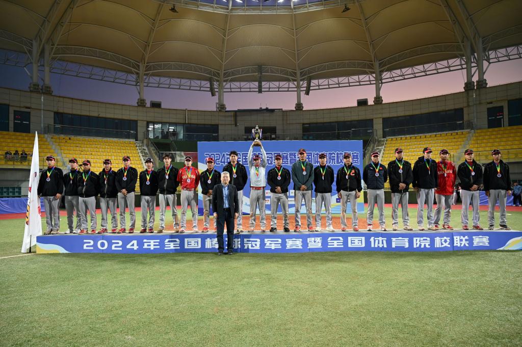 本网讯 10月27日,2024年全国棒球冠军赛暨全国体育院校联赛在我校鄠邑校区棒球场圆满闭幕。中国棒球协会技术委员会主委、赛事技术委员长高琦,中国棒球协会裁判员委员会执委、赛事裁判长刘军,校长李富生,副校长张葆欣,党委校长办公室主任张军,竞赛训练处处长许伟等出席闭幕仪式。